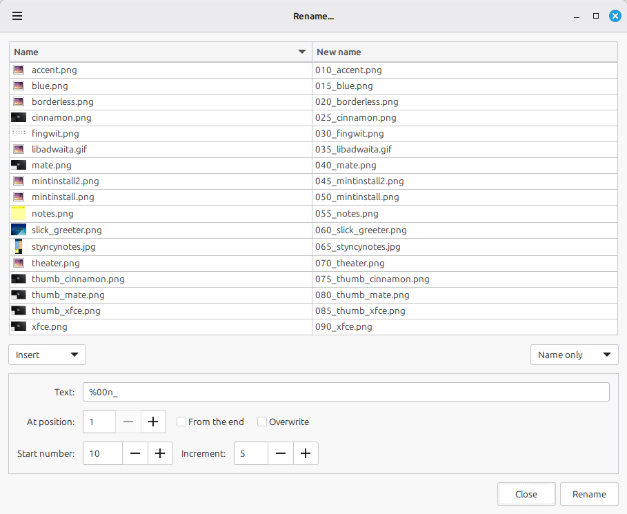 When renaming multiple files and using enumerations, it is now possible to use leading zeros, define the starting number of the enumeration and its increment step.